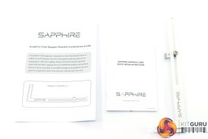 Inside, the only included accessories are a short quick installation guide and GPU support bracket.