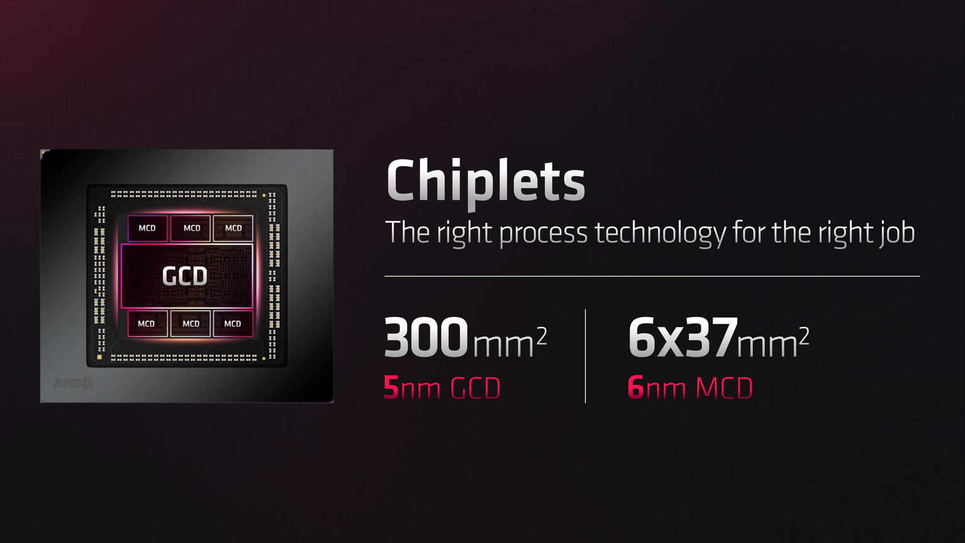 In terms of the new architecture, we will get a deeper dive into RDNA 3 in the coming weeks, but it was clear from the presentation that efficiency is the name of the game for RDNA 3, with numerous architectural improvements designed to offer ‘leadership' performance per Watt. Key to this is the new chiplet design, with Navi 31 packing a 300mm2 Graphics Compute die (GCD) built on a 5nm process which houses the compute units, shaders and display engine. Separate from the GCD, six 37mm2 Memory Cache die (MCD) chiplets are present, based on a 6nm node, housing a 64-bit memory controller and 16MB of Infinity Cache. While all six MCDs are physically present on the 7900 XT, one is disabled, reducing the memory interface and Infinity Cache size versus the 7900 XTX.