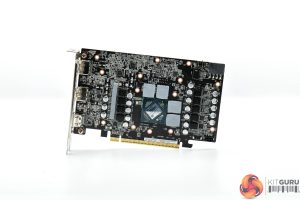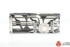 ASRock's heatsink utilises a total of four heatpipes, with the GPU and memory contacting with a central baseplate, while the MOSFETs are cooled by secondary plates.