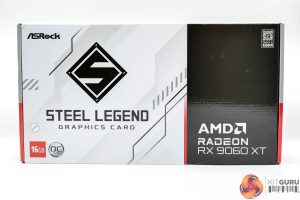 Starting off with the ASRock RX 9060 XT Steel Legend 16GB, this ships in a white and black box, with a few features of the card and cooler design highlighted on the back.