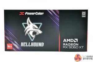 Moving onto the PowerColor RX 9060 XT 16GB Hellhound, this ships in a very dark box, with the Hellhound logo taking pride of place.