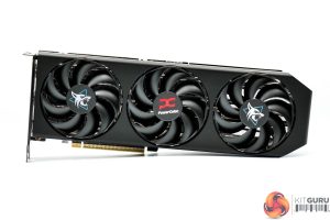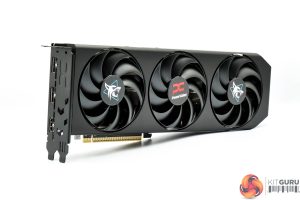 The graphics card itself has changed since we last saw a Hellhound model. Gone is the grey shroud and translucent fan blades, and instead PowerColor has opted for a stealthy all-black approach – with just the stickers on the fans adding some colour.