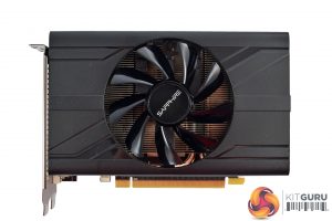 It also takes power from a single 6-pin PCIe power connector, and Sapphire lists the card's power consumption as less than 150 Watts.