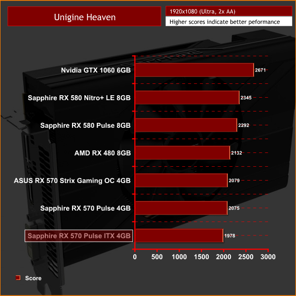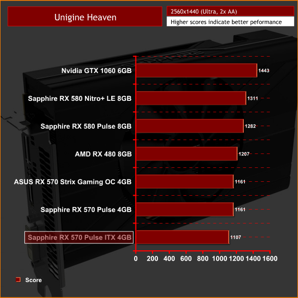 Continuing the trend we first saw from our Fire Strike testing, this Pulse ITX RX 570 is again the slowest of the 7 cards on-test today.