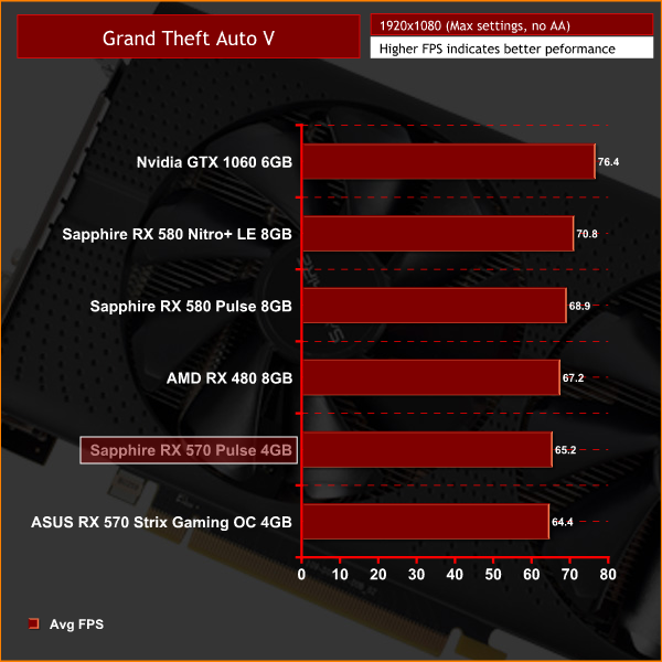 In GTA V the GTX 1060 is the clear winner, but interestingly the Pulse 570 does edge ahead of the Strix 570.