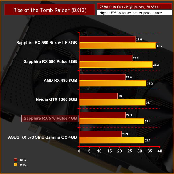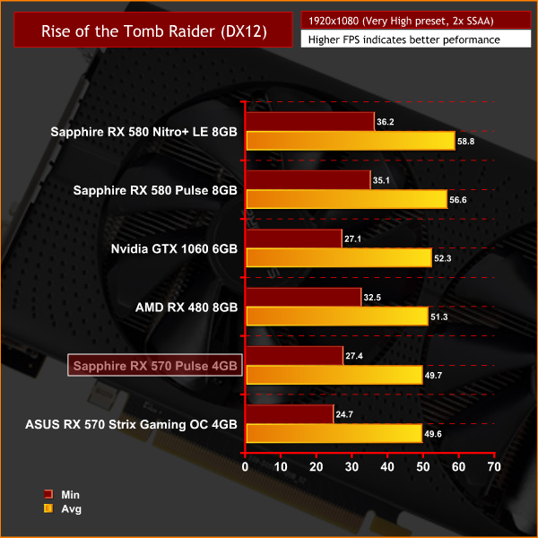 Rise of the Tomb Raider is another game where the Pulse card is marginally quicker than the Strix 570, but the differences are very small.