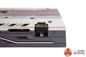 At the end of the card we find a single 8-pin PCIe power connector, and Sapphire accordingly lists the card's power consumption as less than 180W.