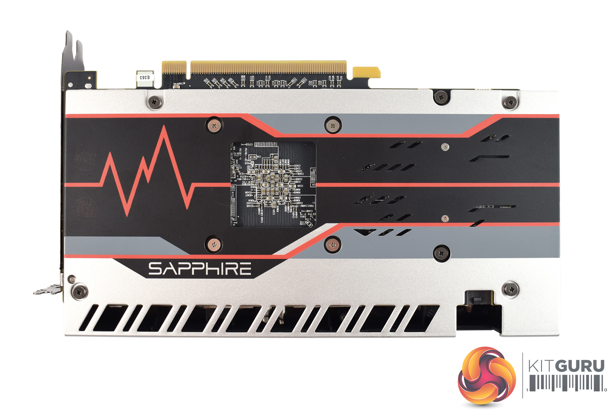 Flipping the card over, we get another look at the Sapphire logo (the right way up this time) as well as a look at the backplate. It is definitely good to see a backplate included with this RX 570, as many manufacturers do not deem RX 570 cards worthy of a backplate – ASUS' Strix card, for instance, does not come with a backplate.