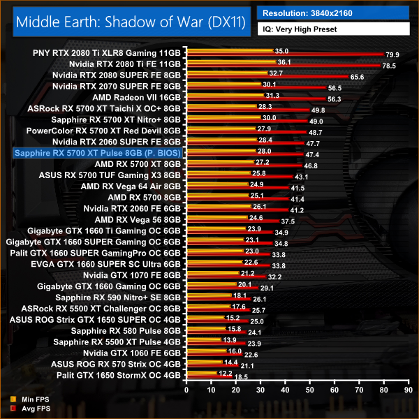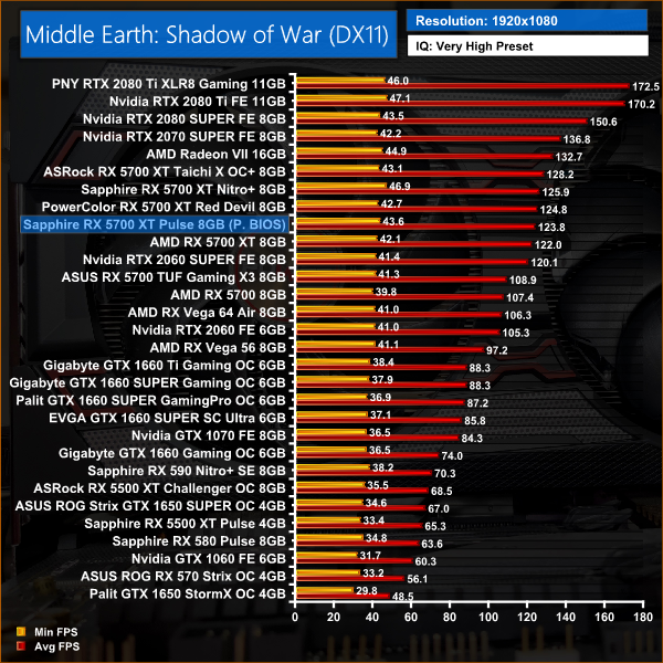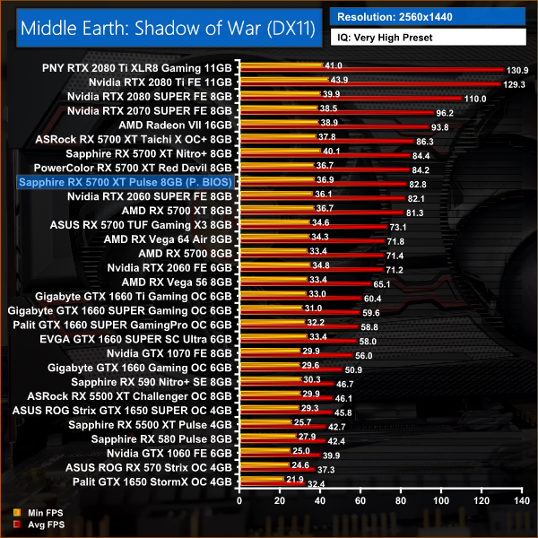 Middle Earth: Shadow of War is a game which heavily favours the 2070 SUPER over the RX 5700 XT – at 1440p, the AMD GPU is 14% slower.