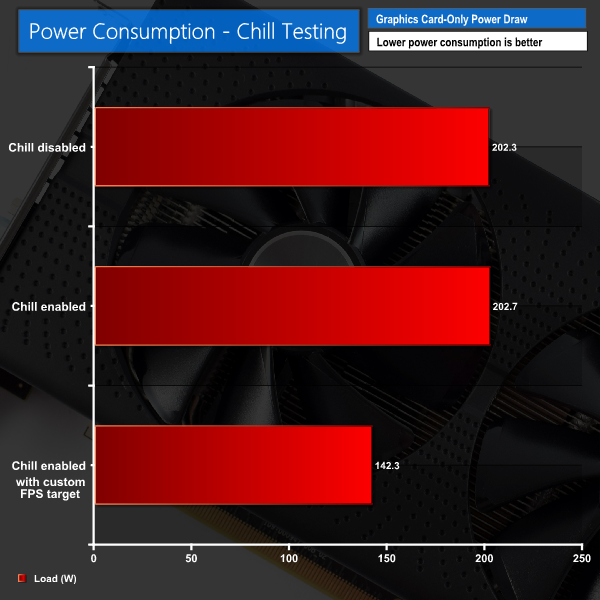 Chill is my favourite feature of the Adrenalin driver. It's a simple but effective idea – with Chill enabled, your frame rate behaves as normal when moving around in-game. When you stop moving, however, Chill detects this and drops the frame-rate, meaning your GPU frequency slows, resulting in lower power draw.