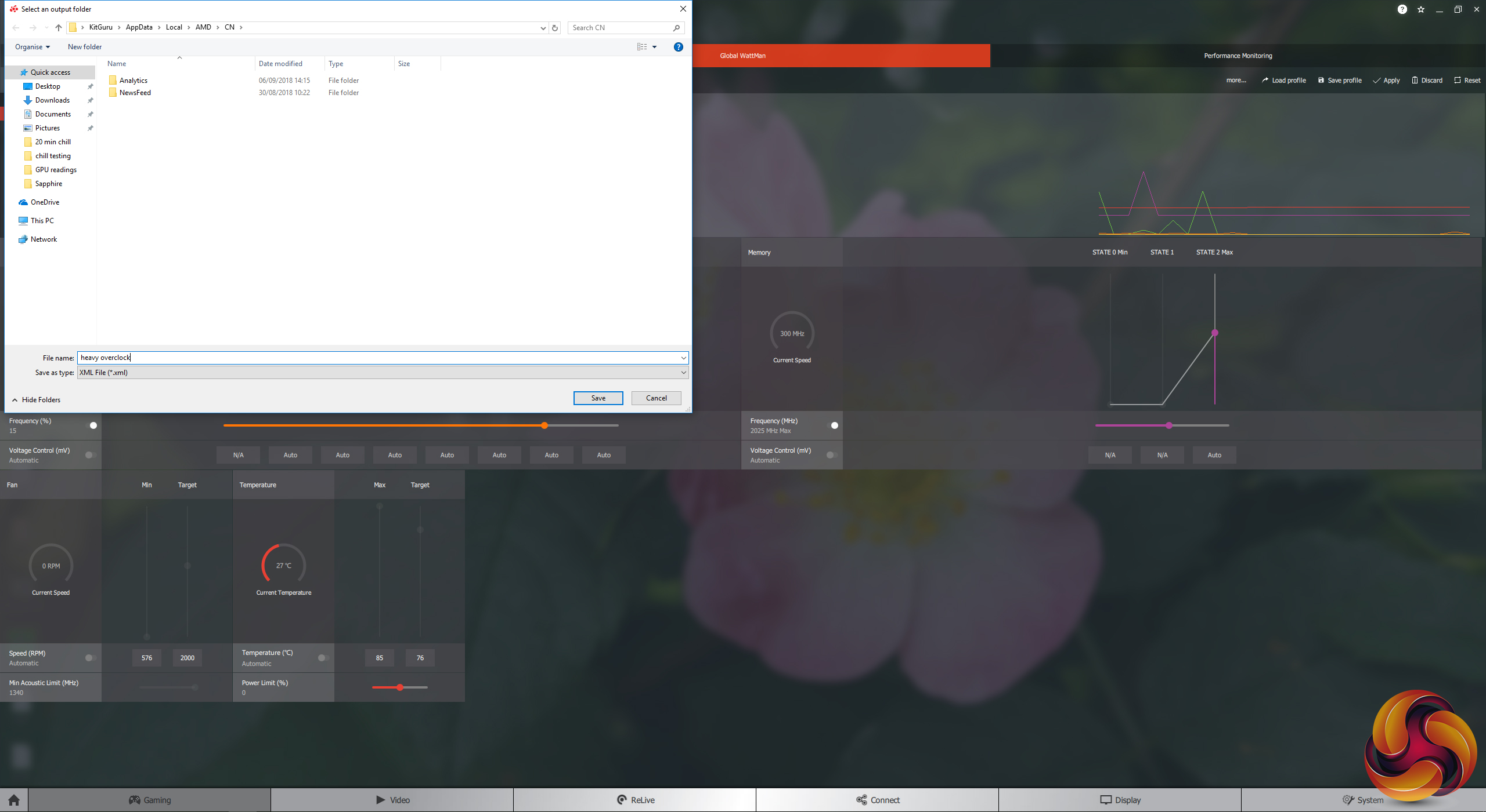 What many people don't know is that you can actually save different profiles – perhaps you want one profile to have the core frequency and fan speed cranked for gaming, but you want a separate profile to stay cool and quiet while browsing the web. You can also share these profiles as well – they simply save as .XML files.