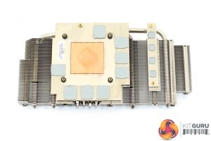 Cooling solutions are similar, but not quite identical. The Pulse heatsink utilises 4x 6mm nickel-plated heatpipes, whereas the Nitro+ card uses 2x 6mm and 2x 8mm heatpipes. Each also has the necessary thermal pads for the VRAM chips and MOSFETs, although the VRAM pads appear to be missing from the Nitro+ heatsink as they stuck to the VRAM chips themselves.