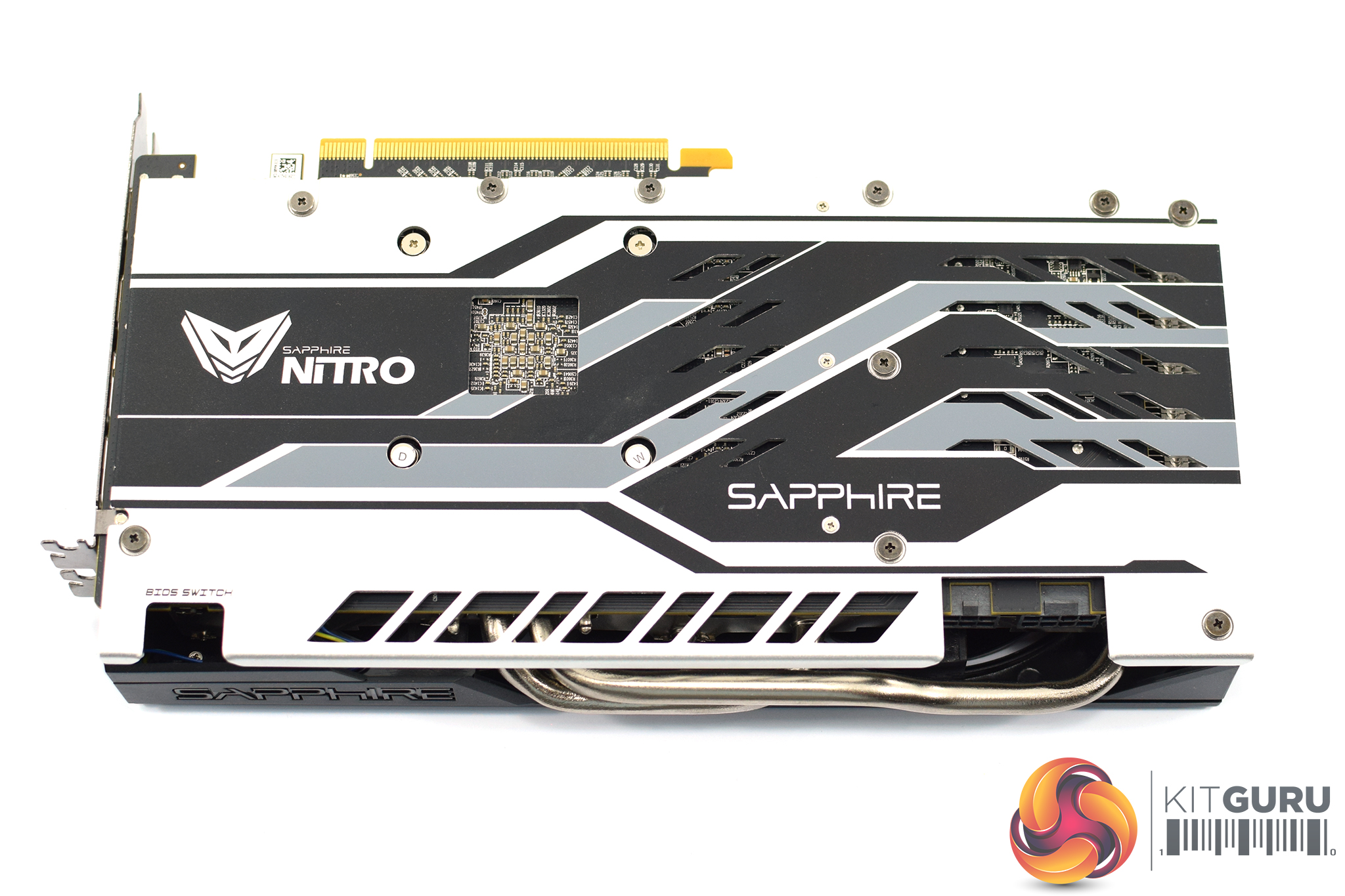 Stylistically, the cards diverge most when it comes to the backplate design. The Pulse sports an EKG graph (hence the pulse name) in red, set on a black section, with grey and silver areas as well. Personally I find it quite stylish, but compared to the monochrome backplate of the Nitro+, the Pulse is much more likely to clash with your system's colour scheme – definitely something to consider.