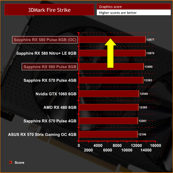 The RX 580 Pulse ships with a small factory overclock but I struggled to get much more out of it. In the end, I settled on 1380MHz, which is a mere +14MHz to the core. Anything further resulted in hard lockups in Fire Strike. This works out as a mere 1% frequency boost.