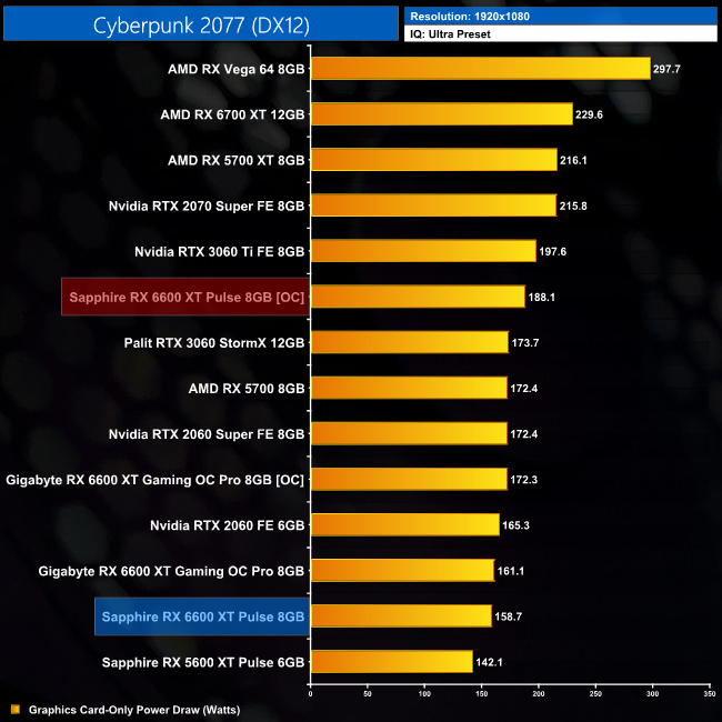 Power draw rose a fair amount when overclocked, up to 188.1W at 1080p. That's a 19% increase over stock.