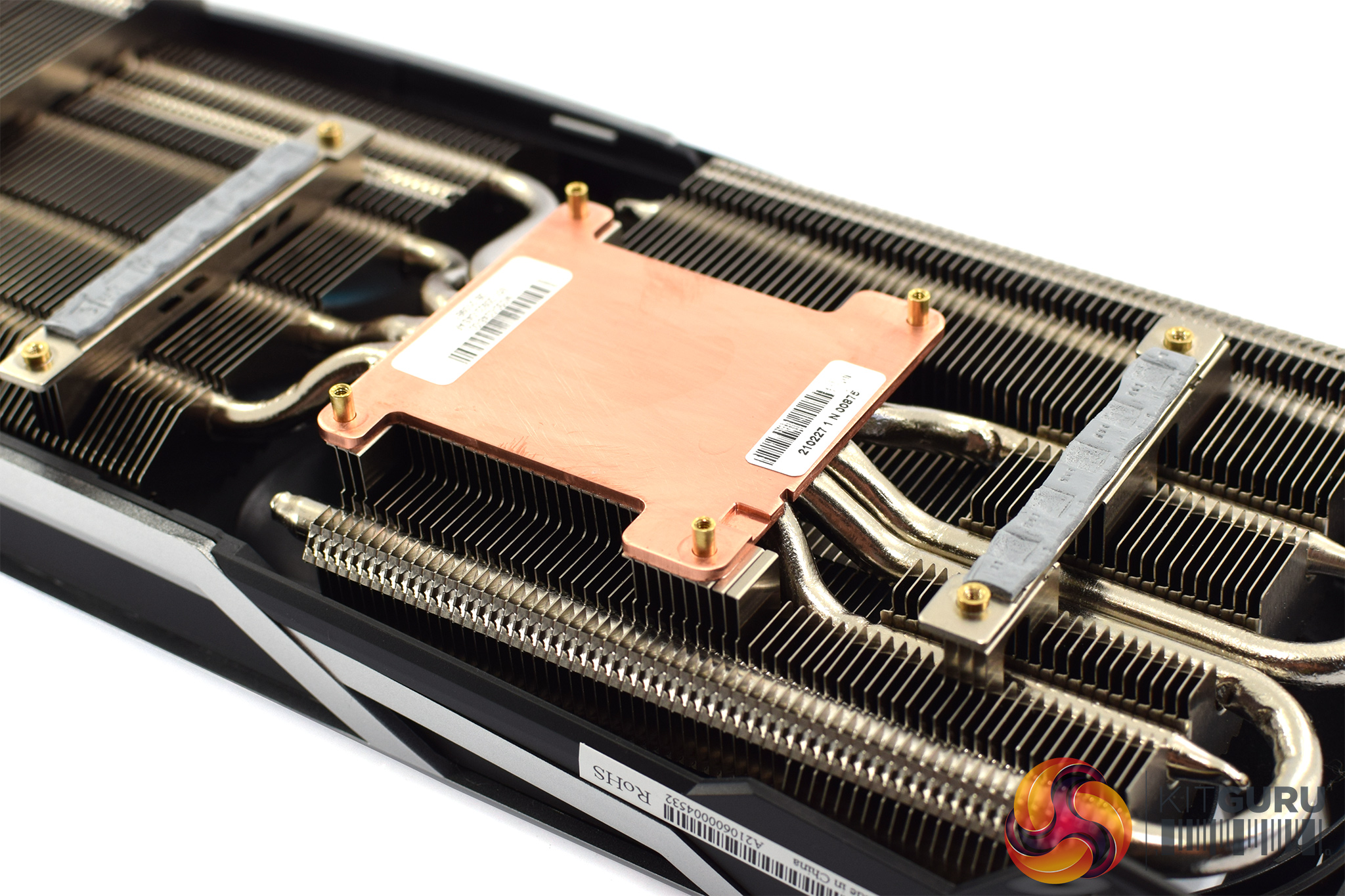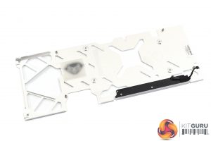As for the backplate, it's a silver metal plate with some black sections. There's a large cut-out at the end of the card though, to allow direct airflow through the heatsink, with another cut-out behind the GPU core.