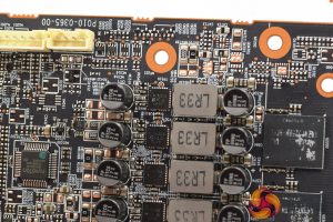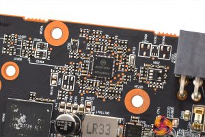 The Nitro+ also features a BIOS switch towards the I/O bracket. The switch furthest from the I/O bracket engages the Performance BIOS, while the central position engages the Silent BIOS. There is a third position, but this is not a third BIOS – rather it lets you use Sapphire's TriXX software to change which BIOS is used without physically moving the switch.