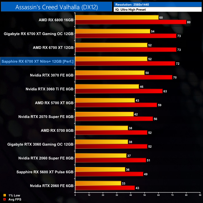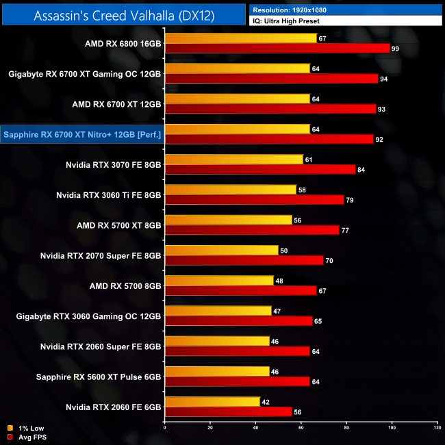 Starting the game benchmarks with AC Valhalla, here the Nitro+ is actually fractionally slower than the reference card. Not by much at all, but it is 1% behind at both 1080p and 1440p.