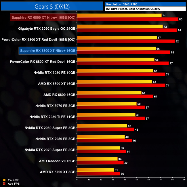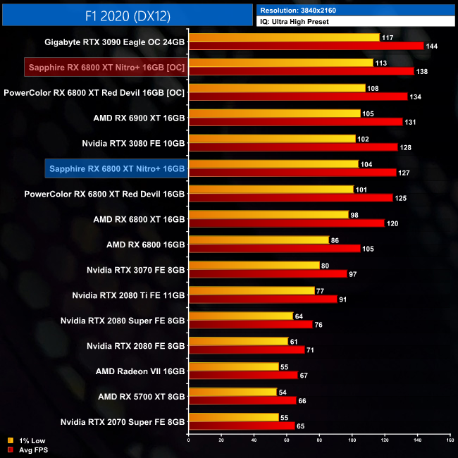 This resulted in gains of between 7-9% in the titles we re-tested, but compared to a stock-clocked reference 6800 XT, the gains came in between 11-15%, which is a pretty sizeable increase over the 6800 XT’s baseline performance.