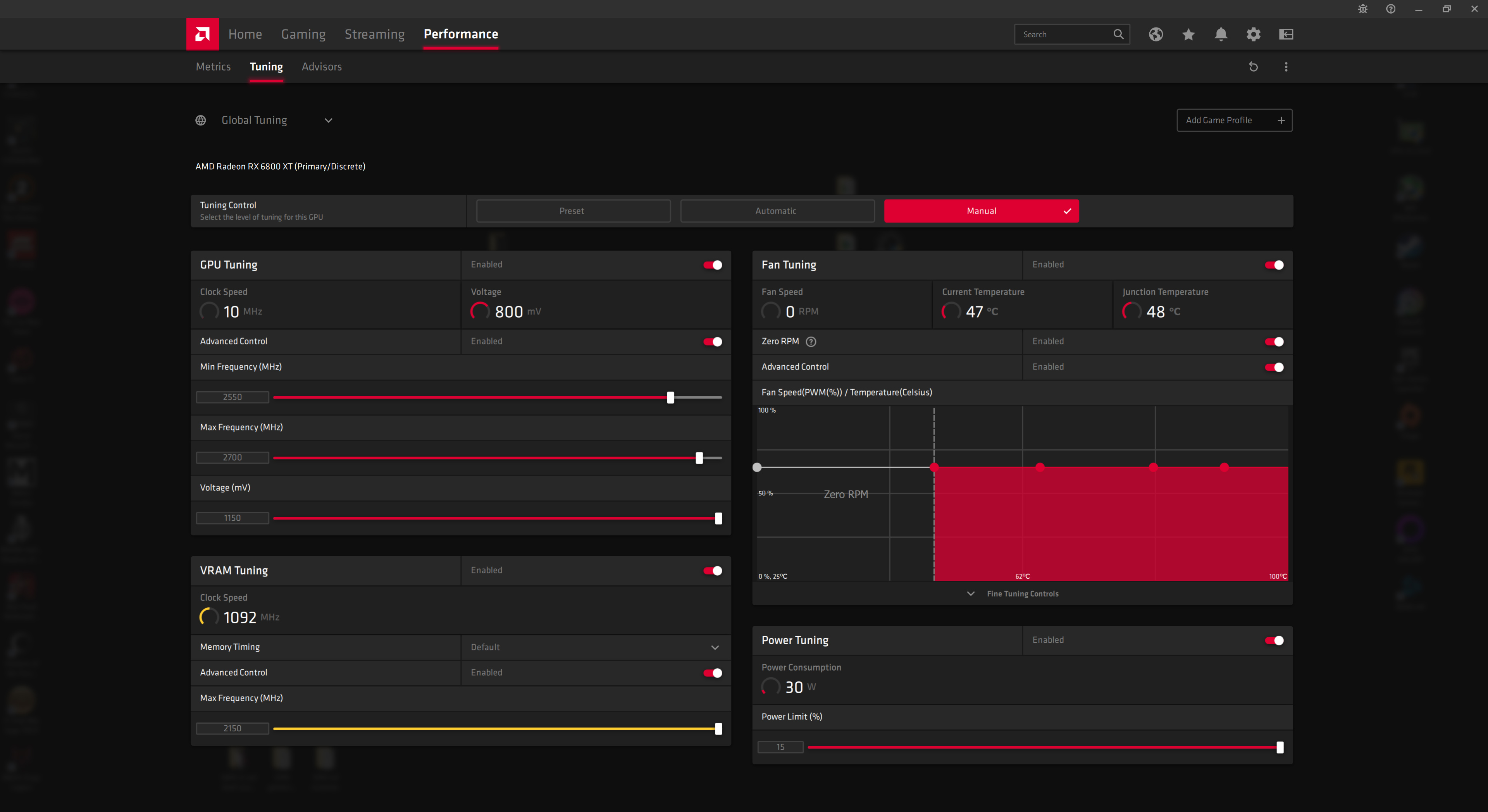 Manually overclocking the Nitro+ proved successful, and we saw better results from this card than what we got with either the Red Devil or AMD's reference card. Do remember that this will vary from sample to sample, but with my Nitro+ I was able to put the maximum GPU frequency up to 2700MHz, with the memory fully maxed out at 2150MHz. In practice, this overclock saw the GPU running between 2600 and 2650MHz, so not bad at all.