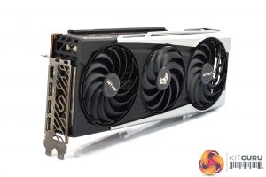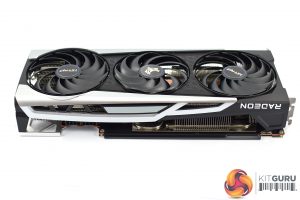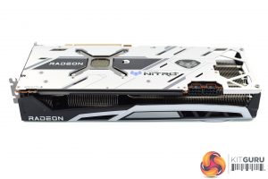 In terms of its size, the Nitro+ measures 310 x 134.3 x 55.3mm, so it is fractionally smaller than the PowerColor Red Devil (which is 320 x 135 x 62mm), but not by a lot. Sapphire is keen to emphasise the lower weight of the Nitro+ though, and on my scale it weighs in at 1239g. The Red Devil is almost 400g heavier at 1612g, while the reference design weighs in at 1496g.