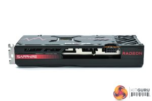The front side of the card is home to the Sapphire and Radeon logos. These are finished in red so that might not be a perfect fit if your system has a specific colour scheme, but the card is mostly black overall. It's also worth pointing out there is no lighting of any kind on this card.