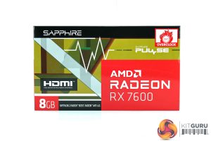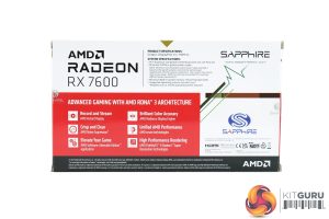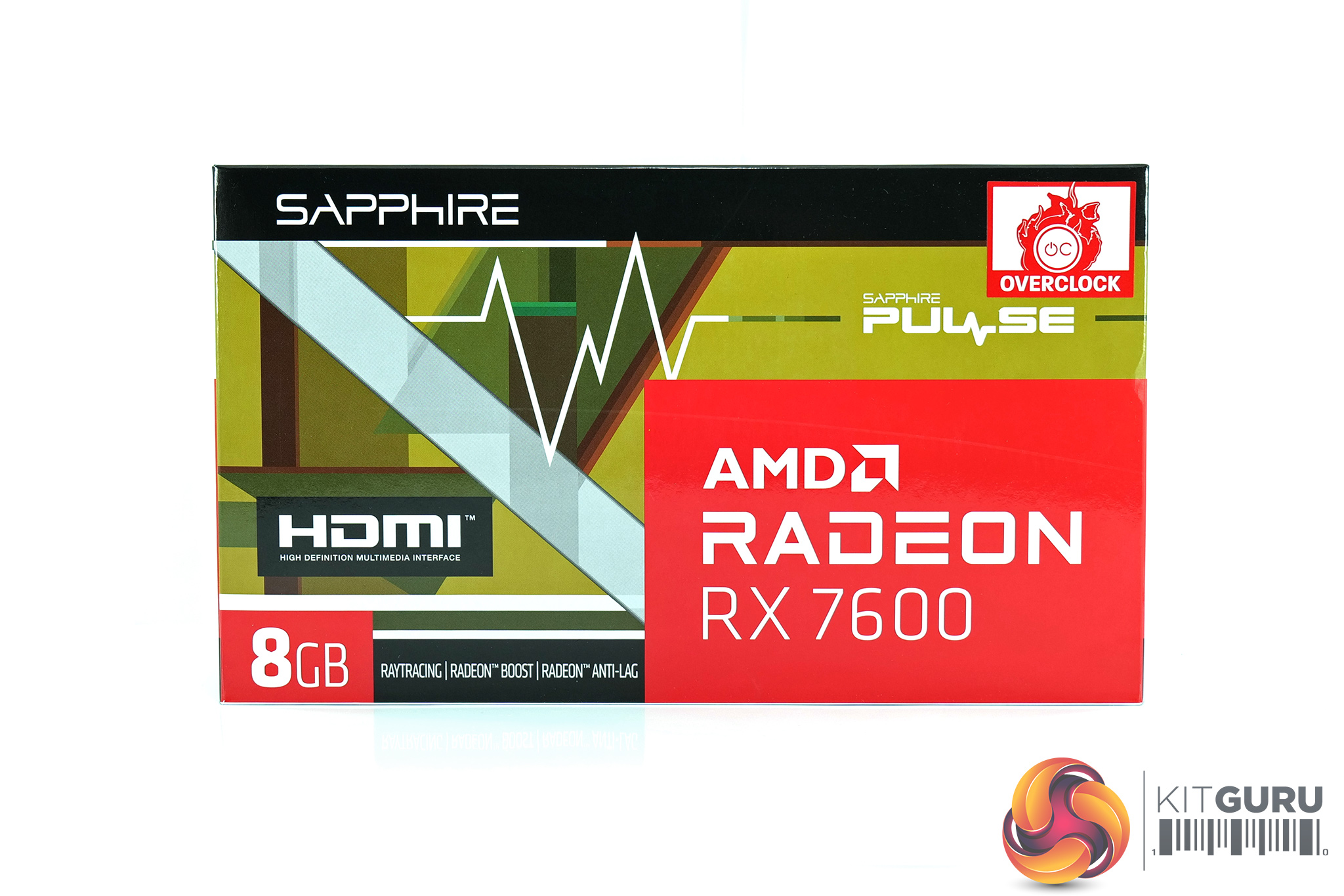 The Sapphire RX 7600 Pulse ships in a compact box with AMD Radeon branding positioned prominently on the front. On the back, Sapphire highlights various key features of the card and cooler.