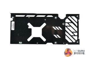 As for the backplate, this is a full-length design and it's made of metal. There's a cut-out behind the GPU core, and a few smaller cut-outs towards the end of the backplate to allow air to pass directly through the heatsink and out into the chassis.
