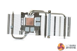 Sapphire is using a compact heatsink, with a horizontal finstack. This utilises two 6mm heatpipes, while the GPU contacts with a copper core. The memory contacts with another baseplate, with a much thinner contact plate used to cool the VRM.