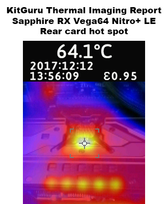 Moving onto our thermal imaging, the hot spot on the rear of the card is directly behind the GPU core. However, this particular spot peaked at just over 64C, which is perfectly fine.