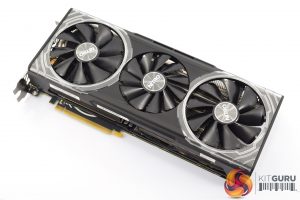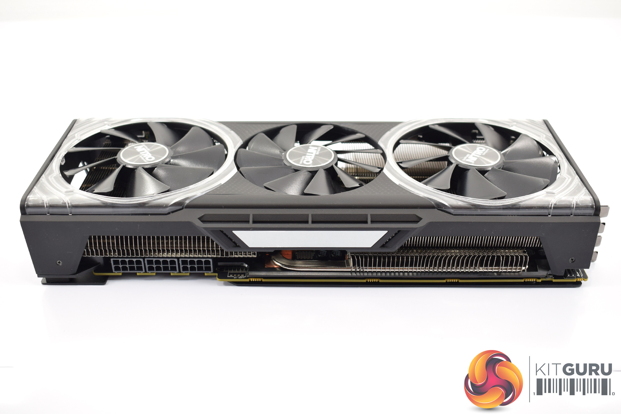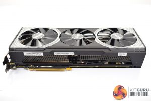 Getting our first look at the card, it is definitely a looker. The black shroud contrasts beautifully against the clear plastic sections which house the card's RGB LEDs, while even the three fans' size differences (two 100mm, one 90mm) is visually appealing.