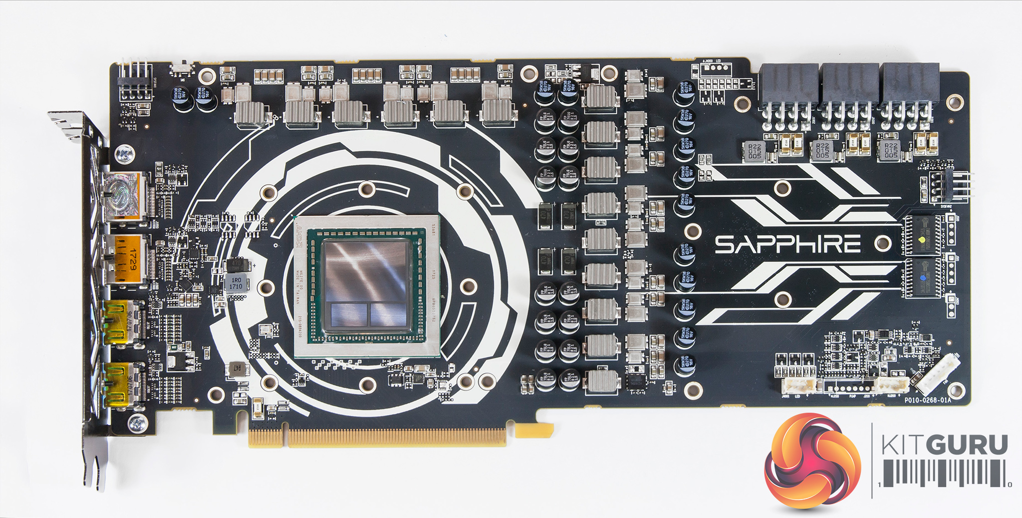 Now, moving onto the PCB and heatsink, we actually had to borrow the above images from Sapphire itself – something we do not usually do. The reason for this is that Sapphire actually asked us not to remove the card's heatsink, for the simple reason that doing so would interfere with their specially manufactured thermal paste – so if we tampered with the card here, it would affect whoever used it next.