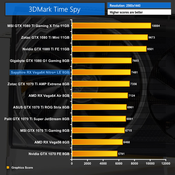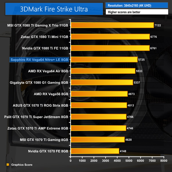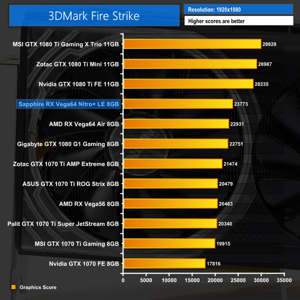 Sapphire's Nitro+ Vega 64 starts off very well in our synthetic set of benchmarks. It is consistently faster than reference Vega 64 across all three tests, with the difference being almost 1000 points in Fire Strike.