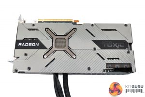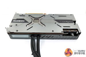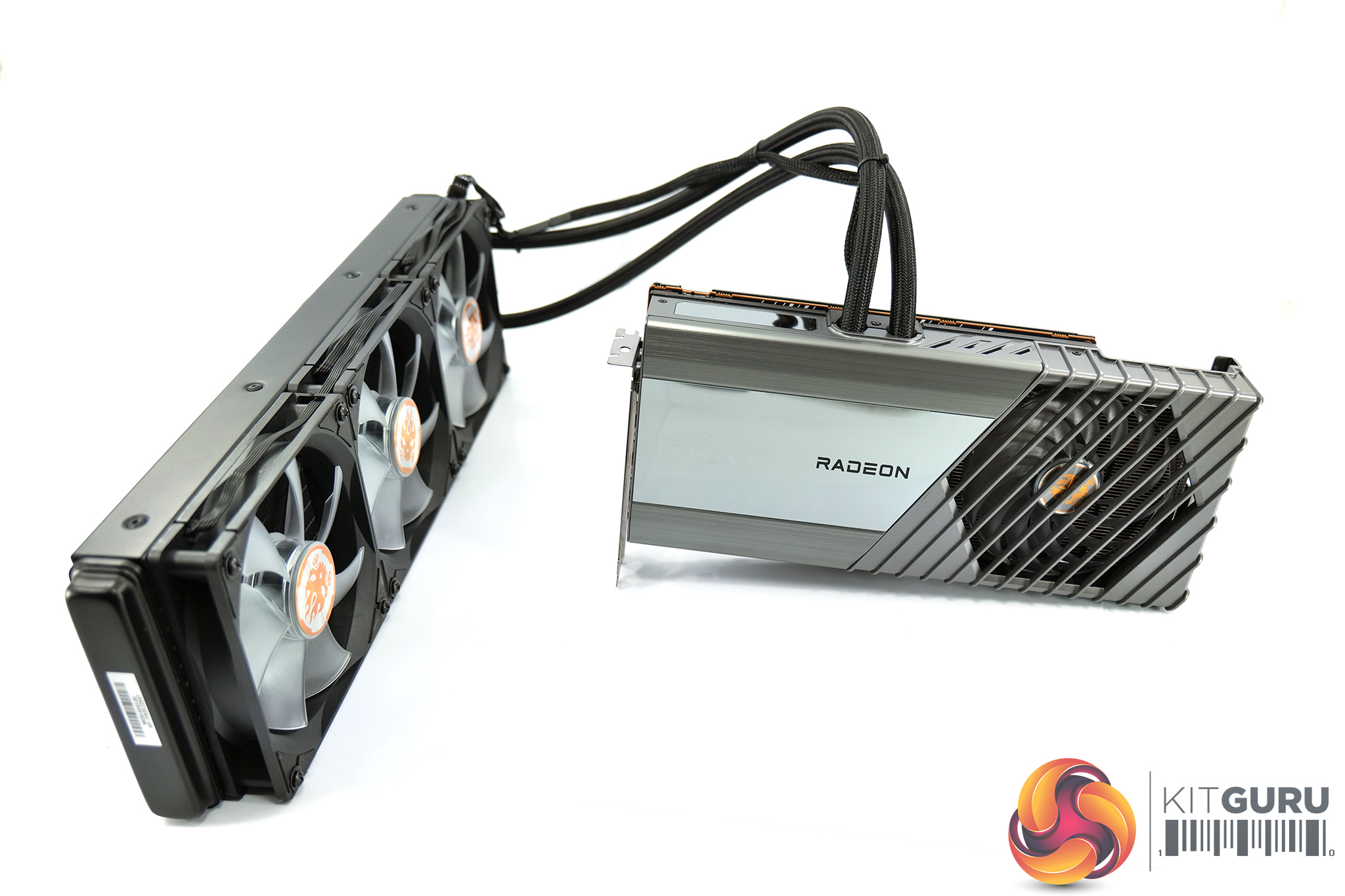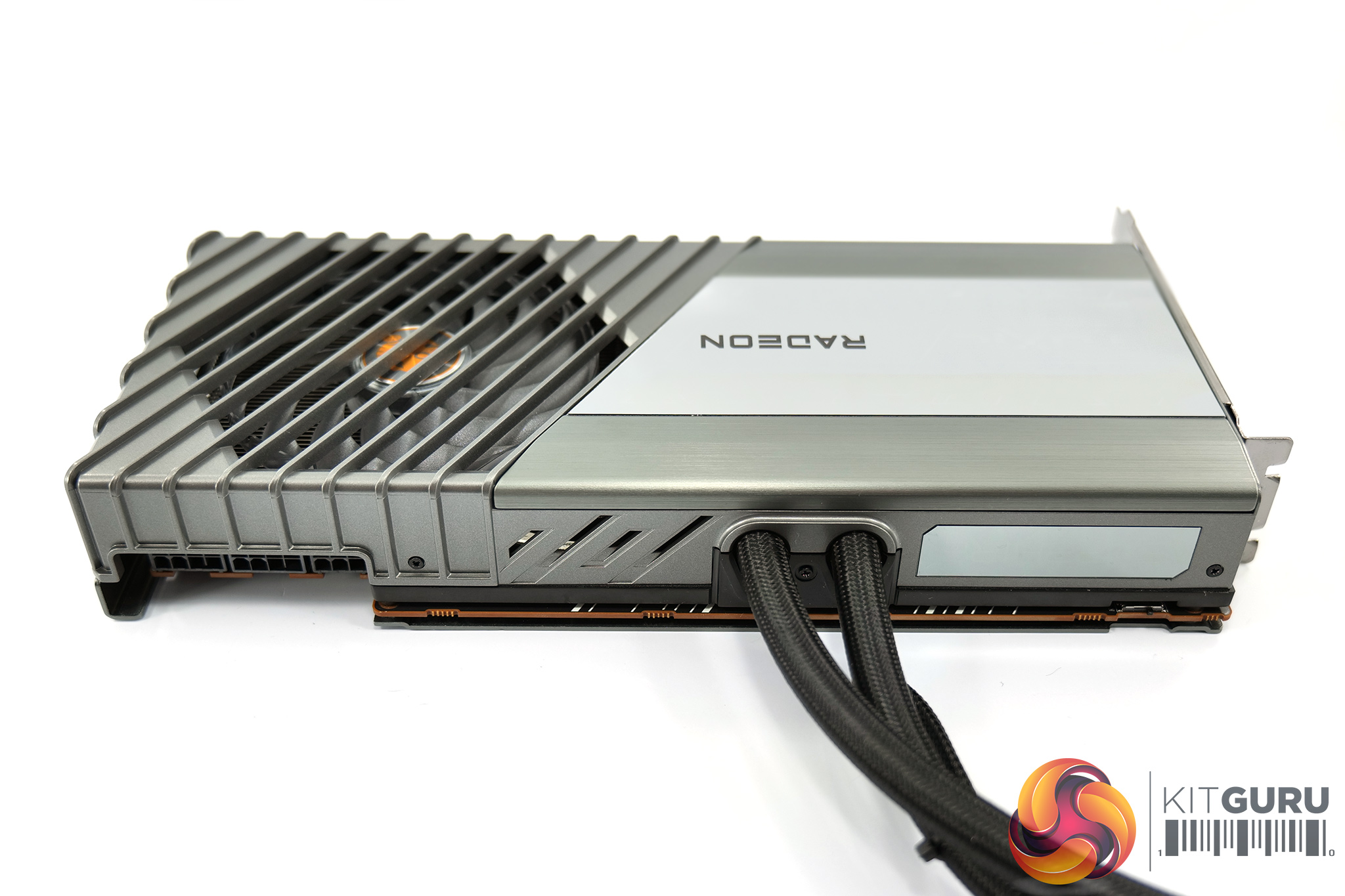 The card itself is quite striking, and it's quite hard to miss with the 360mm AIO attached to it. Sapphire has gone for a hybrid approach, with the AIO responsible for the cooling of the GPU die, while an internal heatsink with two heatpipes – plus a 100mm fan – deal with the VRM and memory modules.