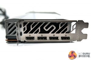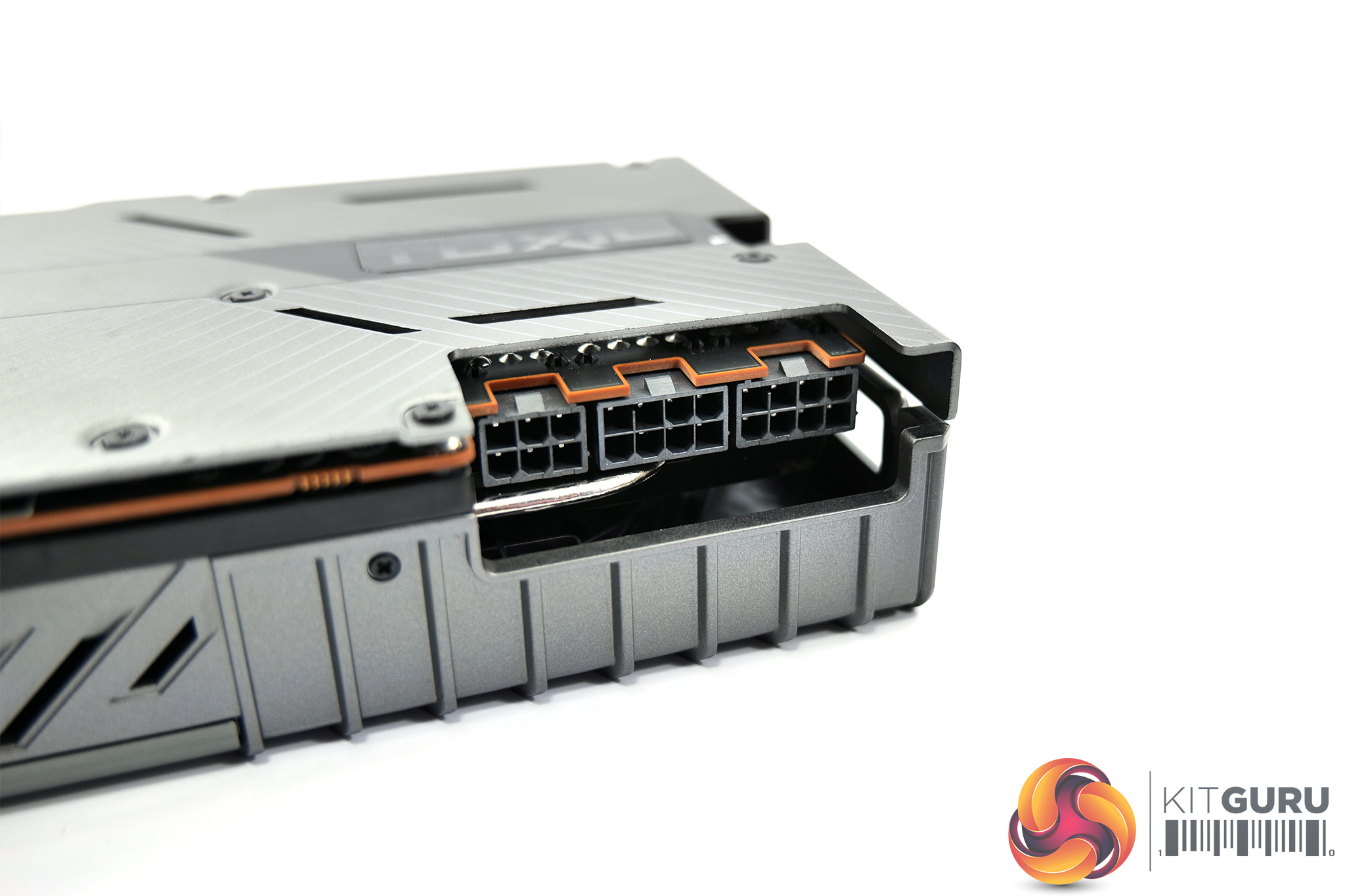 Display outputs consist of 3x DisplayPort 1.4 and 1x HDMI 2.1. Power connectors consist of 2x 8-pins and 1x 6-pin.