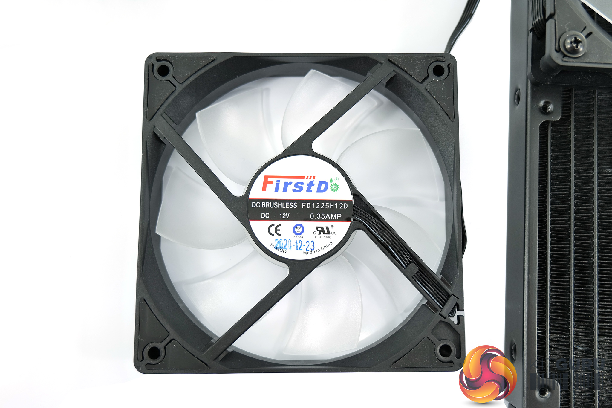 The AIO is an Asetek-branded unit, measuring 394 x 120 x 52.48mm (including the fans). The sleeved tubing measures 470mm long, while Sapphire is using three FirstDO 120mm RGB fans on the radiator, with model code ‘FD1225H12D'.