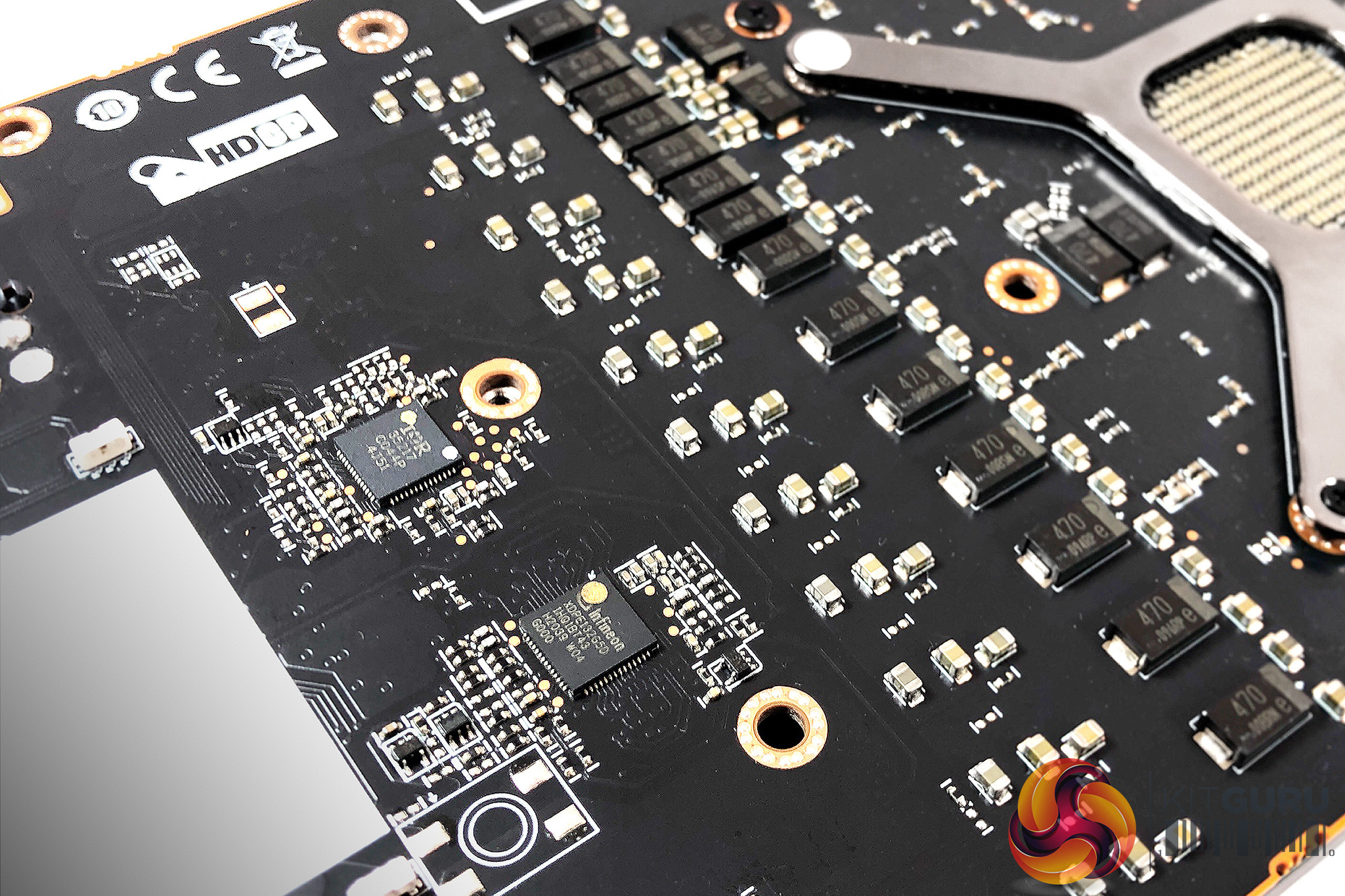 We can see there's a total of 18 phases for the VRM, of which Sapphire claims 14 phases make up the GPU power delivery, and then two phases for the memory and two for SOC. Sapphire is using an Infineon XDPE132G5D controller for the GPU VRM, and the International Rectifier IR35217 controller for the memory.