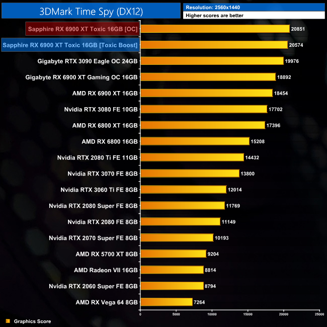 After testing with Toxic Boost enabled, we couldn't get much more out of the Toxic. We maximised the power limit (+15%) and tweaked the core to 2700MHz, while we added another 20MHz to the memory.
