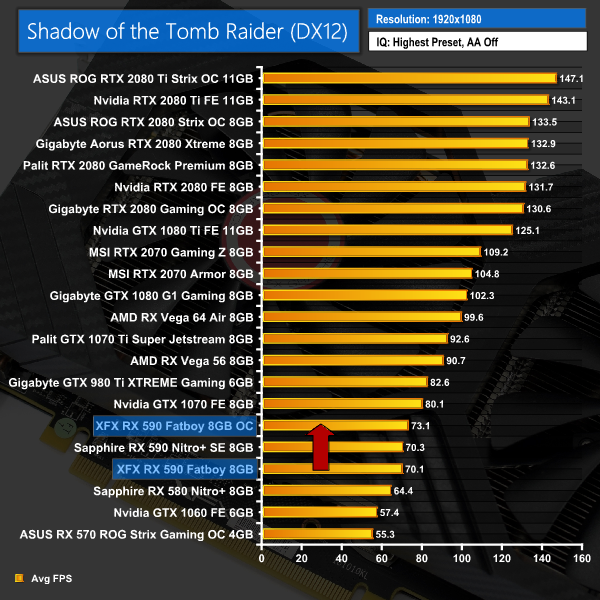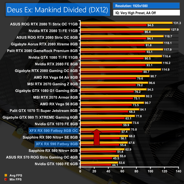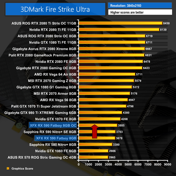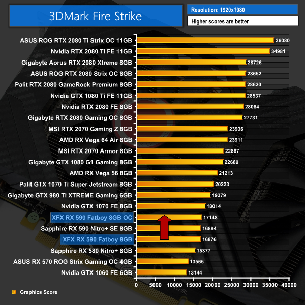 This isn't a big overclock by any stretch of the imagination – RX 590 really seems to have been pushed about as far as it can go already. Still, we saw some minor improvements to our Fire Strike score, an about an extra 3FPS when gaming at 1080p, so it's certainly something – but not much.