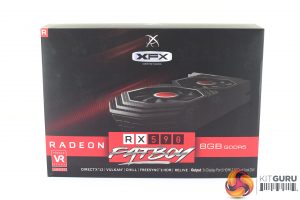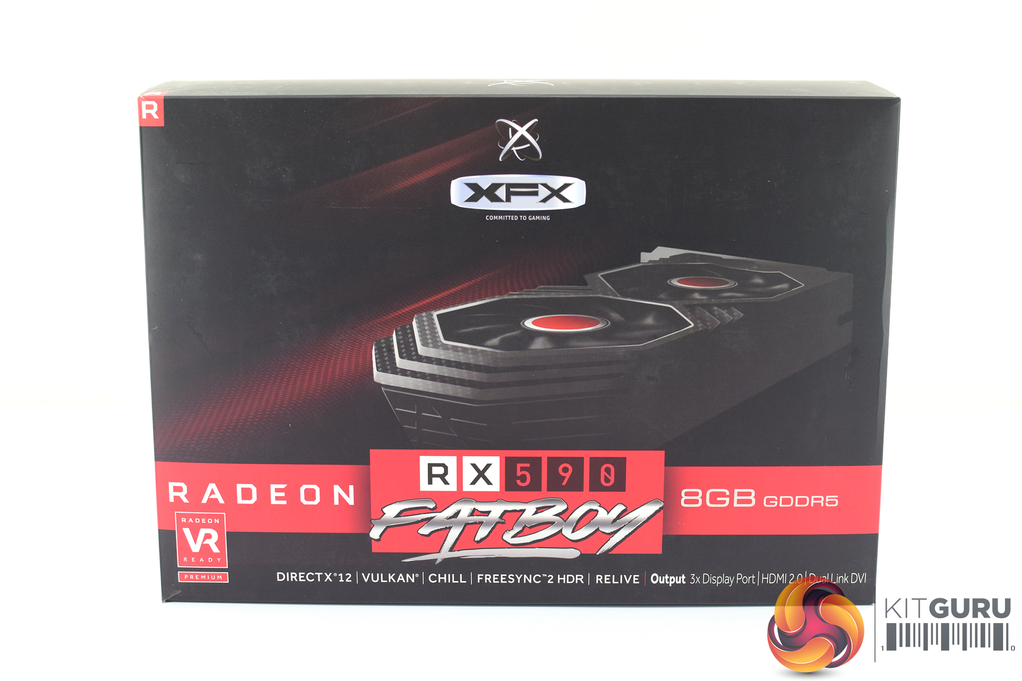 The XFX RX 590 Fatboy 8GB ships in a pretty bare-bones black box, with an image of the card on the front alongside the AMD Radeon branding.