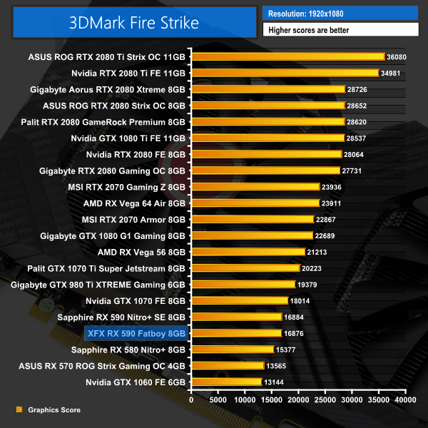 After our first set of 3DMark benchmarks, we can clearly see there is not much in it between the XFX and Sapphire RX 590 cards – the XFX is just behind, but only by the slimmest of margins.
