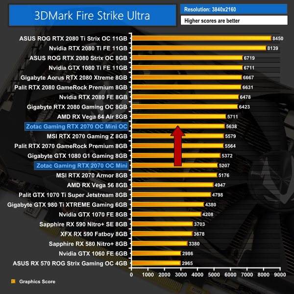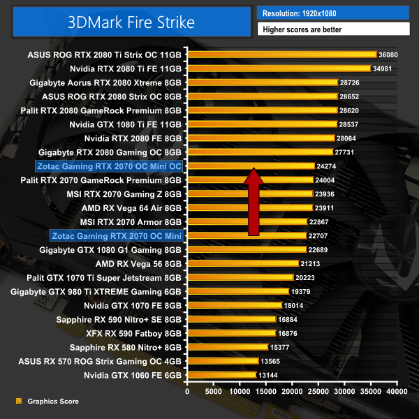 When overclocking the 2070 OC Mini, we used Zotac's FireStorm tool. We were able to add +125MHz to the GPU core, and +750MHz to the memory with the power and temperature target sliders maximised.