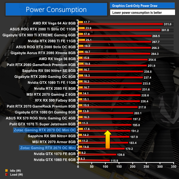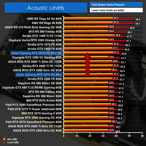 The Zotac did surprisingly quite well with this overclock. The GPU temperature rose 4C, up to 67C which is still a good result, though noise levels started to approach 44dB which is getting slightly more bothersome on the ears. Power consumption isn't anything to worry about though, with an increase of about 20W to be expected.