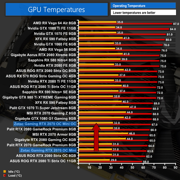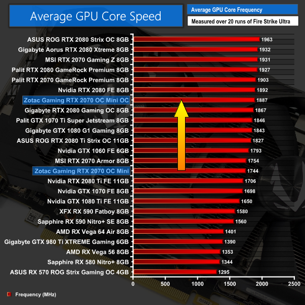 Average frequency did well, too, getting just below the 1900MHz mark. For a card this small, I was quite happy with that – even if other, bigger 2070 cards can run faster out of the box.