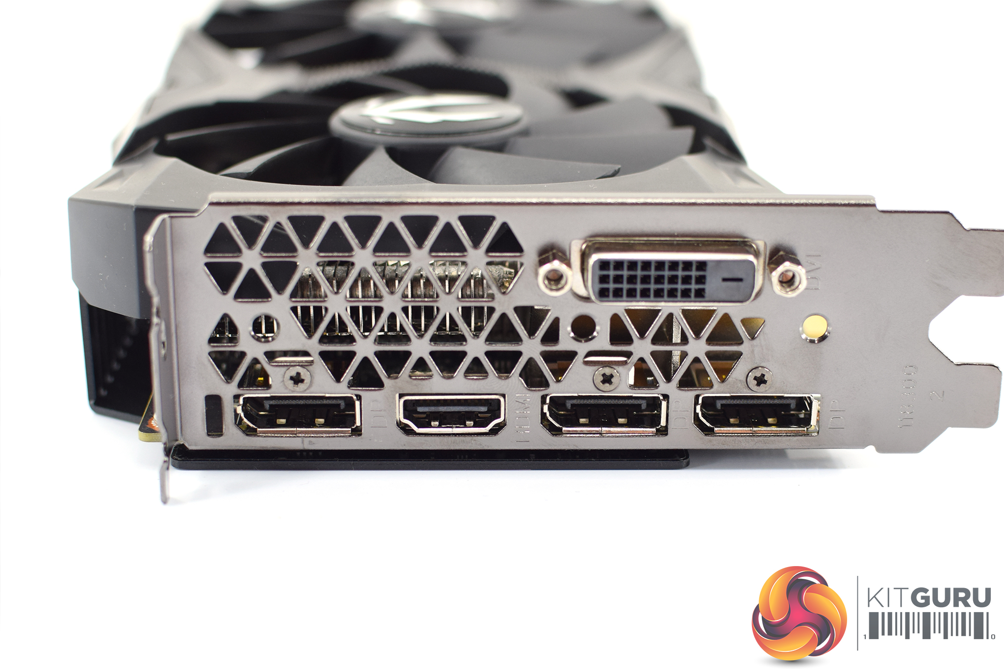 In terms of I/O, we find 3x DisplayPorts, 1x HDMI and 1x DVI-D – but interestingly no USB-C which has quickly become standard for RTX cards.
