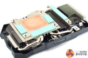 The heatsink makes use of 5 nickel-plated heatpipes, and they all look like they measure 6mm. Given the size of the card, the aluminium fin stack is not thick dense at all, and I am very interested to see how hot this card runs – but we will get to that later in the review.