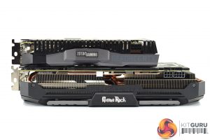 Above you can see also see two pictures of the Zotac Mini compared to the Palit RTX 2070 GameRock Premium to really highlight this size difference – both are 2070s, yet one is a very short and dinky 2-slot card, while the other is almost 30cm long and effectively a triple-slot card. They obviously have different target audiences, but it really does highlight the dimensions of this Zotac card.