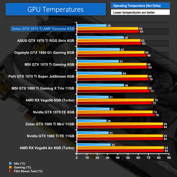 Also unsurprisingly, the AMP Extreme's thermals are excellent – I was expecting some impressive results given the card does have a massive heatsink and triple-fan cooling configuration. These results came with the power target set to 140%, too, which only makes the result even more impressive.