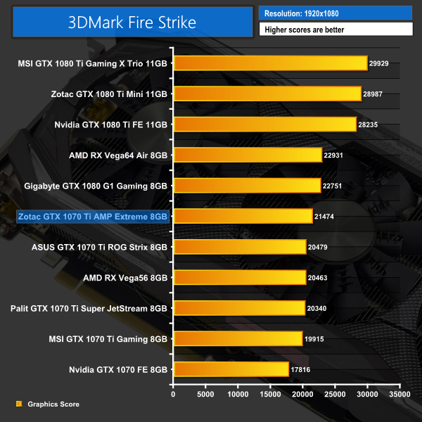 It is a good start for the AMP Extreme GTX 1070 Ti here – it posts the highest scores yet for a 1070 Ti in Fire Strike and Time Spy, while it is still competitive in the 4K Fire Strike Ultra test.