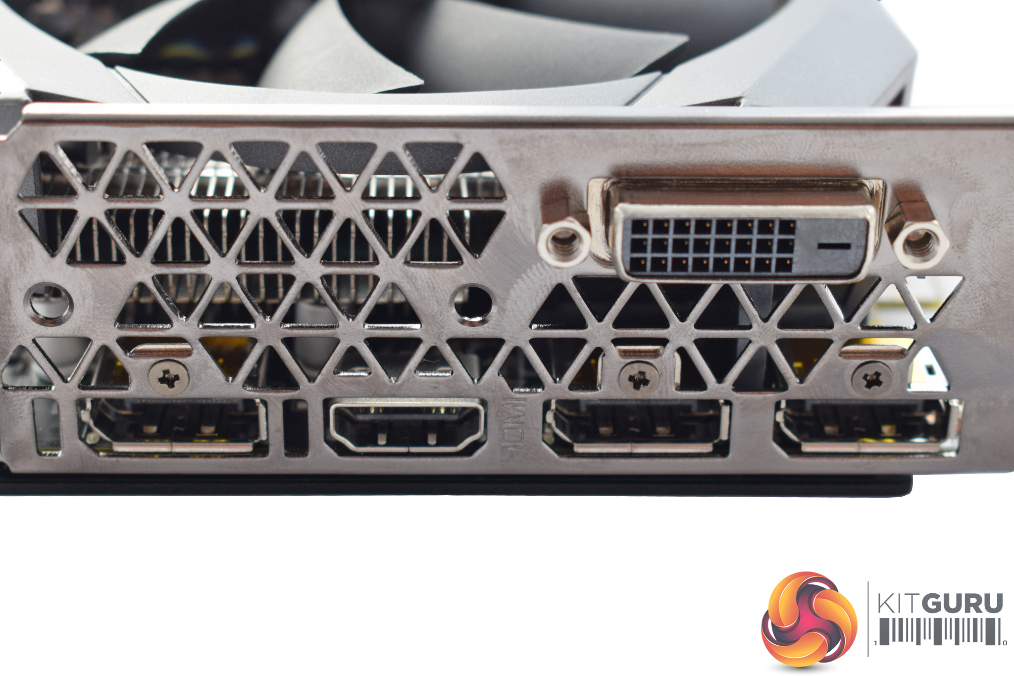 Elsewhere, the keen-eyed amongst you may well have noticed that the card's two fans are not only different sizes, they also use different fan blade designs. The fan on the left (when seen from above) is 90mm and uses swept fan blades, while the fan on the right is 100mm in size and uses much straighter, flatter fan blades.